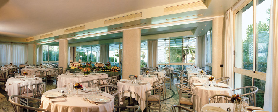 Pranzo e cena serviti a tavola, con scelta tra tre primi e tre secondi più buffet di contorni caldi e freddi. Il servizio spiaggia con un ombrellone e 2 sedie a sdraio a camera.